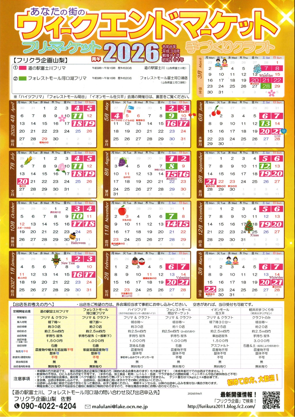 2026年度のフリーマーケット予定表です。